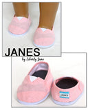 JANES by Liberty Jane in dark red corduroy fabric. Cute cotton wrap style shoes designed to fit 18 inch American Girl Dolls!